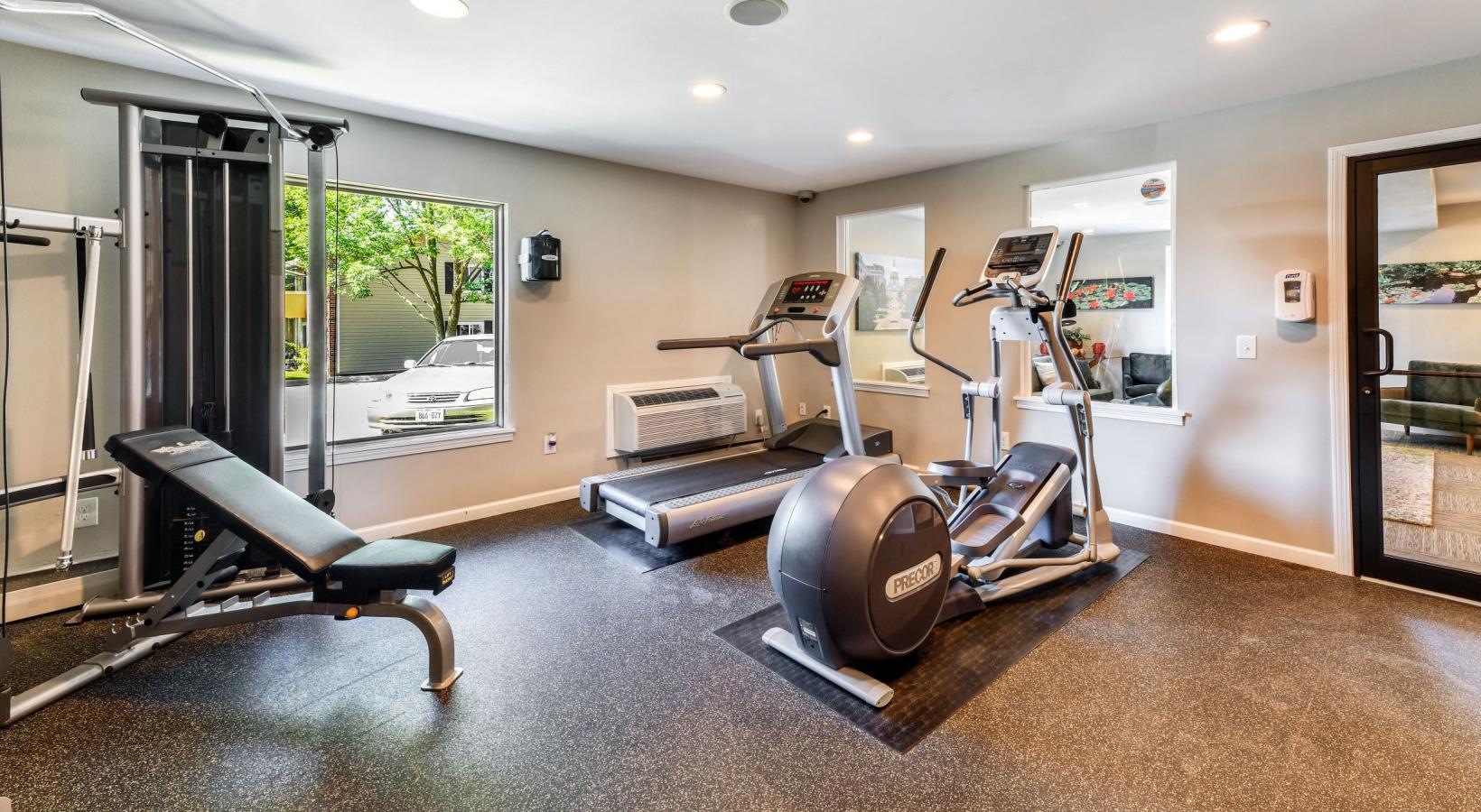 • a gym with exercise equipment