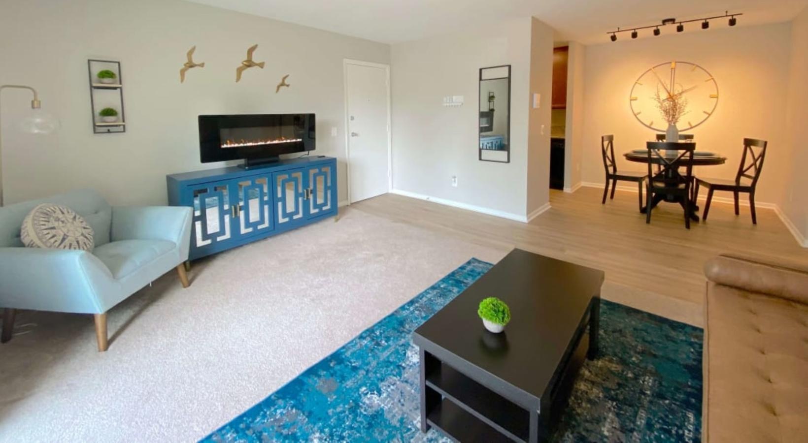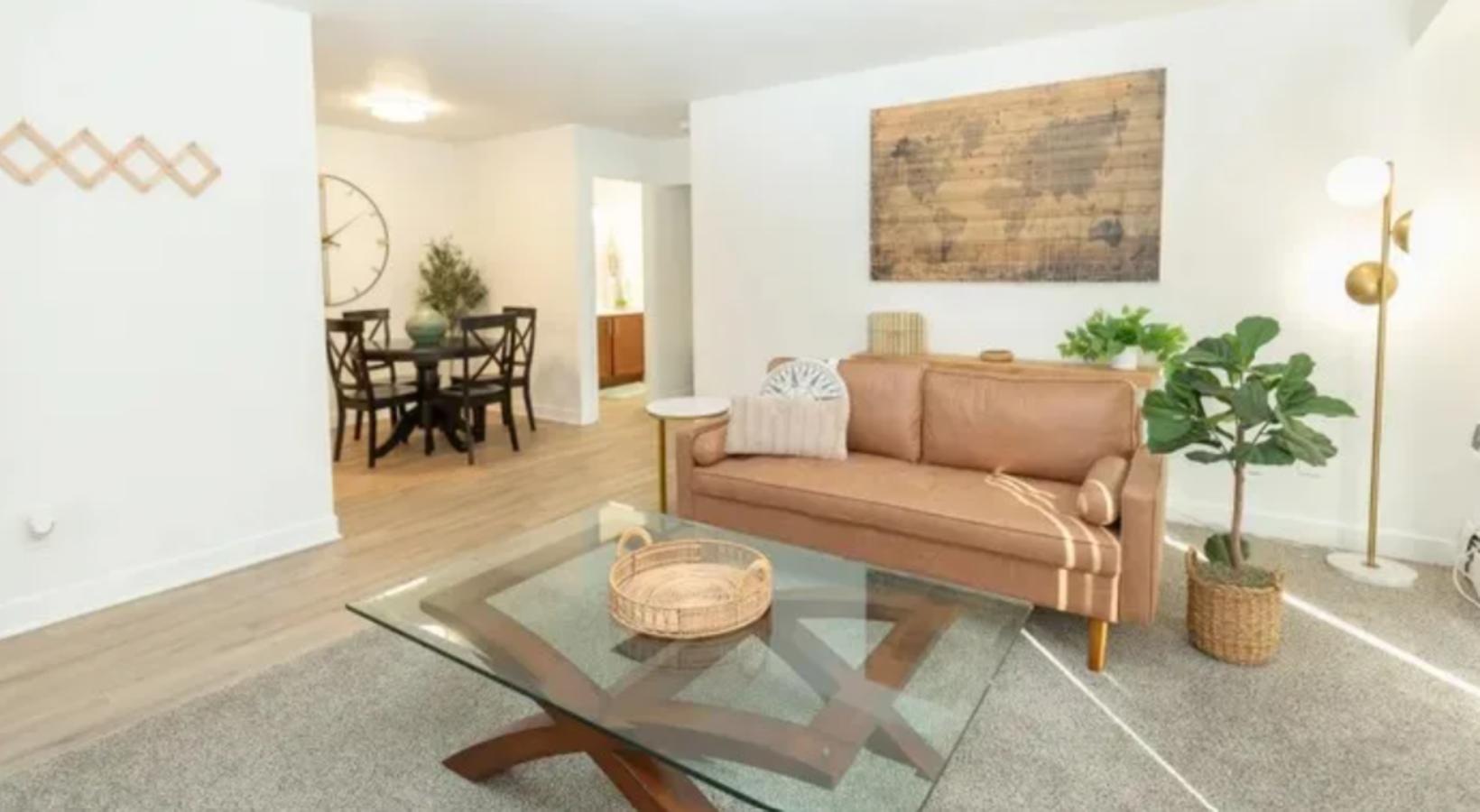 • a living room with a couch and coffee table