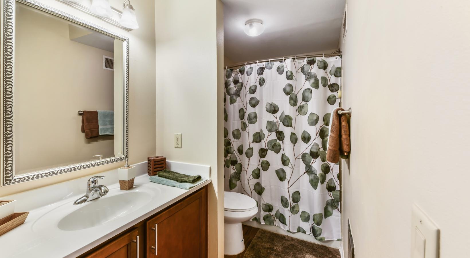 • a bathroom with a sink and a mirror