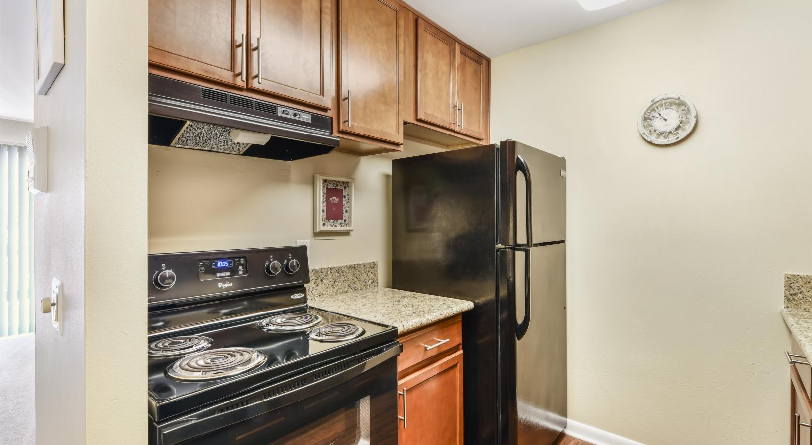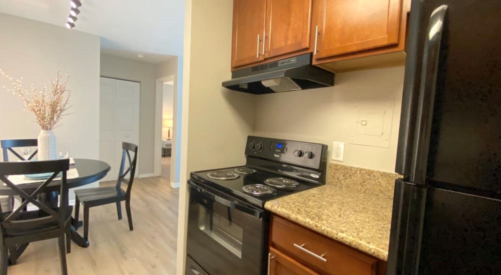 • a kitchen with a stove and refrigerator